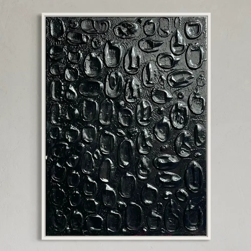 Gloss Echo Layer Die Serie Gloss Echo Layer lebt von der Spannung zwischen Kontrolle und Zufall. Kräftige Pinselbewegungen treffen auf Schichtungen von Heavy Gloss Gel, das Farben wie ein Echo reflektiert. Die charakteristischen Kleckse ragen als haptische Erinnerungen aus dem Bild heraus, während Quarzsand die Vergänglichkeit der Zeit und erdige Tiefe verkörpert. Die massiven, unruhigen Oberflächen laden dazu ein, die Malerei beinahe körperlich wahrzunehmen. Das Licht wird dabei zum Mitmaler, das Werk offenbart sich mit jeder Veränderung des Tages neu und fordert den Betrachter in einem ständigen Dialog heraus.